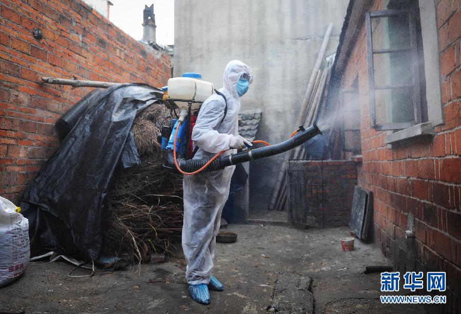 安徽省天長市對H7N9禽流感患者住所附近進(jìn)行徹底消毒。(杜宇/新華社)
