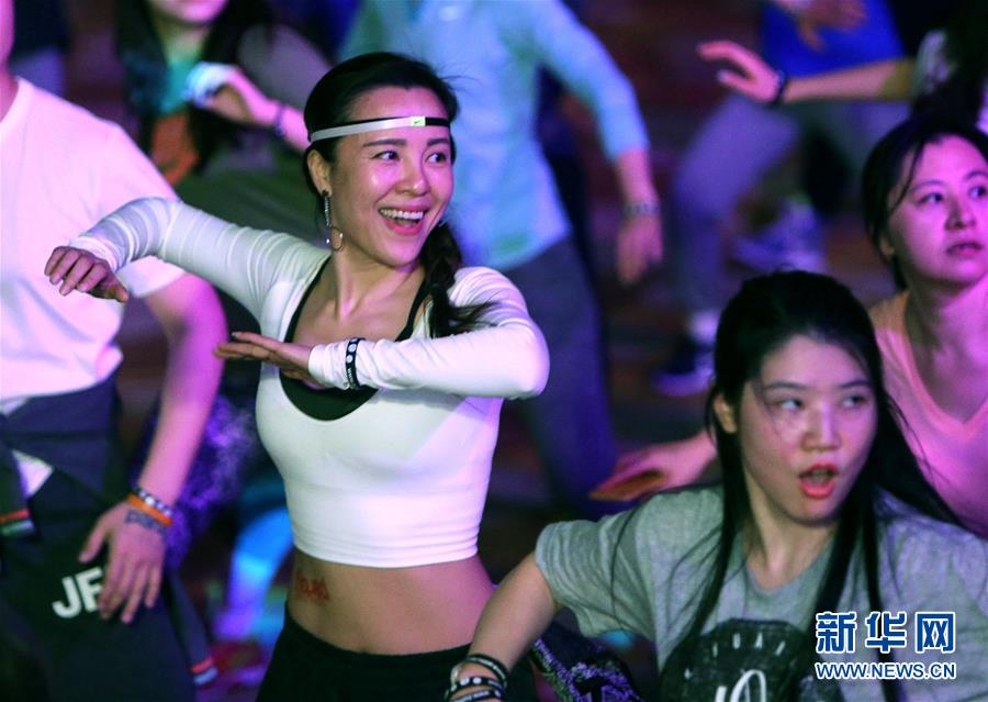 3月23日,健身愛好者隨著音樂舞動(dòng)。(陳飛/新華社)