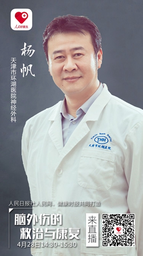 4月28日(周五)下午2:30,由人民日報社人民網、健康時報聯手打造的“人民好醫(yī)生”客戶端將以《人民的名義》邀請愛行醫(yī)創(chuàng)始人、天津市環(huán)湖醫(yī)院神經外科主任醫(yī)師楊帆進行視頻、圖文直播,為大家揭秘顱腦外傷患者如何通過治療提高存活率;在康復中,患者和親屬又將面臨哪些挑戰(zhàn),應該如何應對呢?