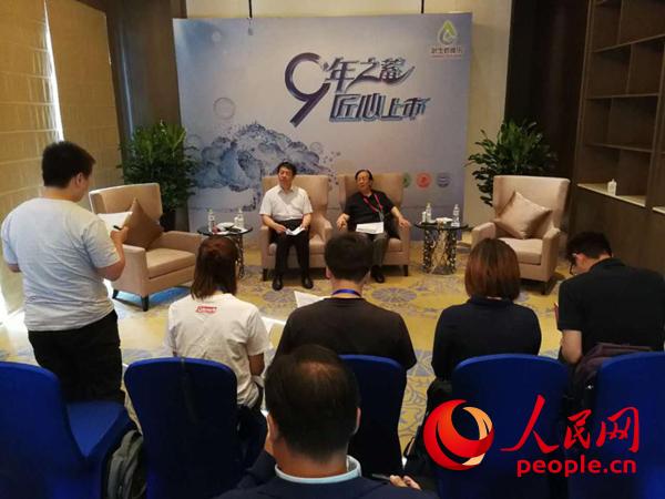 中國生物技術股份有限公司董事長楊曉明(左)與中國工程院院士趙鎧(右)接受記者采訪。(主辦方供圖)