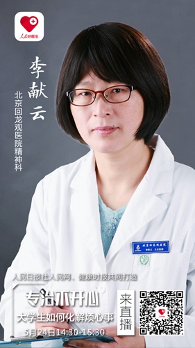 5月24日(周三)下午2:30,由人民日報社人民網(wǎng)、健康時報聯(lián)手打造的“人民好醫(yī)生”客戶端將邀請北京回龍觀醫(yī)院心理專家李獻(xiàn)云教授在線直播,如果您有考生心理健康、大學(xué)生心理困惑以及精神疾病等方面的問題想要咨詢,請移步客戶端給專家留言(具體方法見文末)。