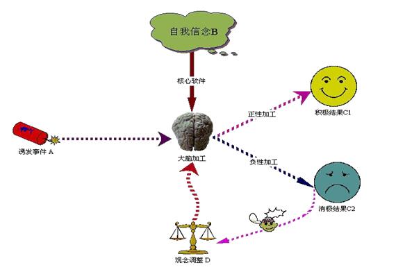 如下圖,同樣的事件,經(jīng)過(guò)大腦加工(自我信念),可以產(chǎn)生積極或消極的結(jié)果。