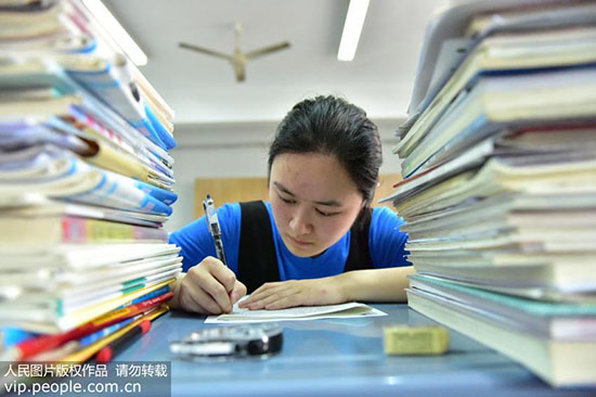 2017年6月1日,安徽省銅陵市第三中學(xué)考生笑對(duì)高考,緊張而有序迎接即將到來(lái)的高考。(洪偉/人民圖片)