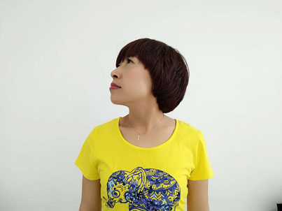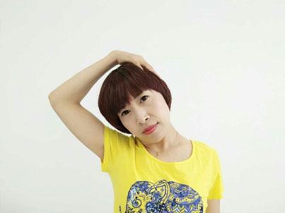 ①雙手下垂呈自然狀態(tài)。緩慢抬起頭部,使鼻尖朝向右上,注視上方。