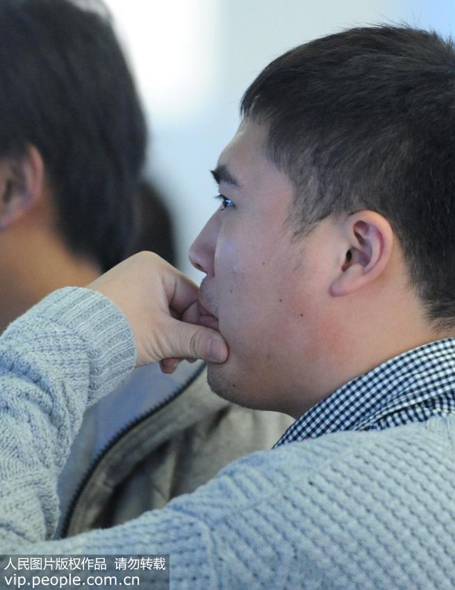 2014年11月8日,在徐州市人力資源服務(wù)中心舉行的高校畢業(yè)生招聘會上,求職者或渴望、或?qū)Wⅰ⒒蚪箲]、或迷茫,各種表情寫在臉上。(孫井賢/人民圖片)