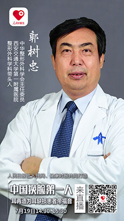 7月19日(周三)下午2:30,由人民日報(bào)社人民網(wǎng)、健康時(shí)報(bào)聯(lián)手打造的“人民好醫(yī)生”客戶端將邀請西安交通大學(xué)第一附屬醫(yī)院整形外科學(xué)科帶頭人郭樹忠教授,進(jìn)行視頻、圖文直播,并在線解答廣大網(wǎng)友的提問!