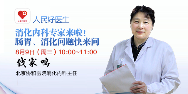 8月9日(周三)上午10:00-11:00,北京協(xié)和醫(yī)院消化內(nèi)科主任錢家鳴教授將做客由人民日報(bào)社人民網(wǎng)、健康時(shí)報(bào)聯(lián)手打造的“人民好醫(yī)生”客戶端,進(jìn)行視頻、圖文直播,在線解答腸道相關(guān)問題。如果您有消化道方面的問題,快來提問吧!