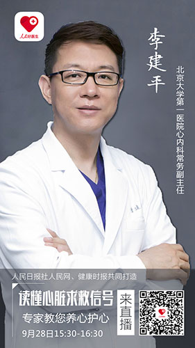 9月28日(周四),15:30-16:30,由人民日?qǐng)?bào)社人民網(wǎng)、健康時(shí)報(bào)聯(lián)手打造的“人民好醫(yī)生”客戶(hù)端將邀請(qǐng)北京大學(xué)第一醫(yī)院心內(nèi)科李建平教授在線(xiàn)科普問(wèn)診,教您讀懂心臟的“求救”信號(hào),并講解日常養(yǎng)心護(hù)心的方法,渴望與李教授交流的網(wǎng)友們,千萬(wàn)不要錯(cuò)過(guò)!