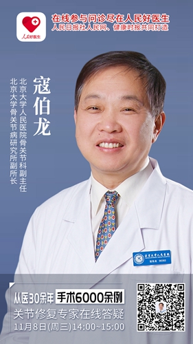 11月8日下午14:00-15:00,北京大學人民醫(yī)院骨關節(jié)科副主任,北京大學骨關節(jié)病研究所副所長寇伯龍將做客由人民日報社人民網、健康時報聯(lián)手打造的“人民好醫(yī)生”客戶端進行視頻、圖文直播,解答您的各種關節(jié)問題,趕緊來提問吧!