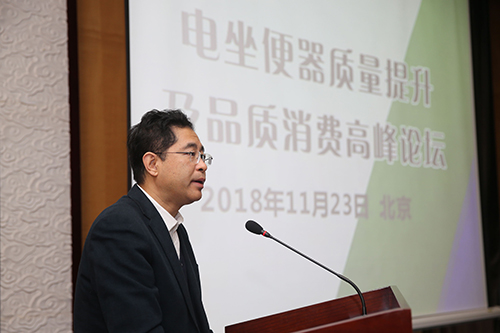 2018年11月23日,中國家用電器研究院副院長馬德軍在“電坐便器質(zhì)量提升及品質(zhì)消費高峰論壇”致辭