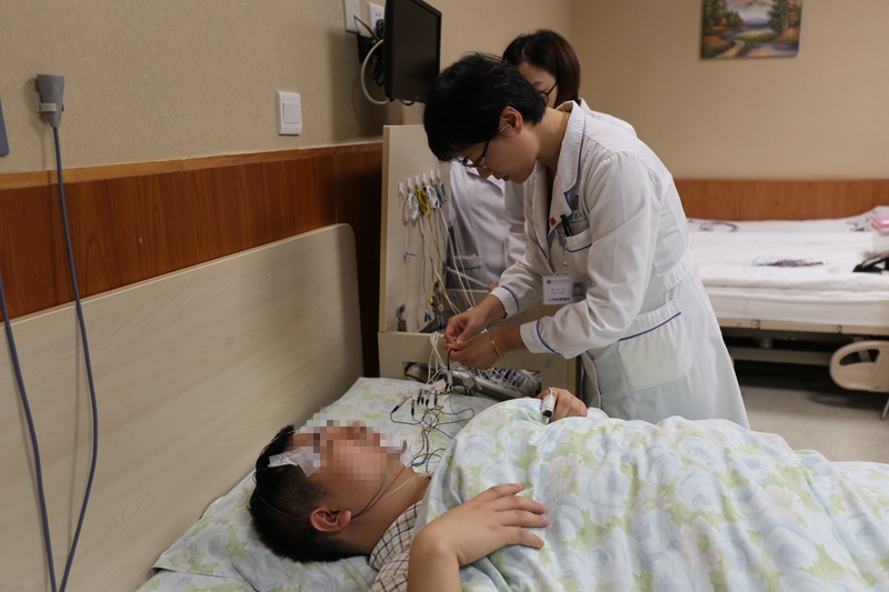 患者在清華長庚醫(yī)院睡眠監(jiān)測病房做監(jiān)測/清華長庚醫(yī)院供圖