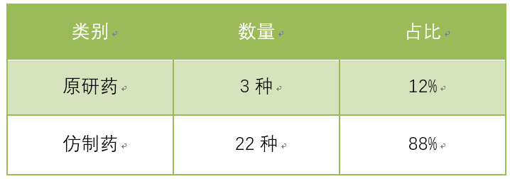 本網(wǎng)對第一批入選的藥品進(jìn)行梳理發(fā)現(xiàn),25種藥品中有10個(gè)心腦血管系統(tǒng)藥物、6個(gè)神經(jīng)系統(tǒng)藥物、3個(gè)抗腫瘤和免疫調(diào)節(jié)劑、3個(gè)全身用抗感染藥物、1個(gè)消化系統(tǒng)及代謝藥、1個(gè)肌肉骨骼系統(tǒng)藥物和1個(gè)呼吸系統(tǒng)藥物。