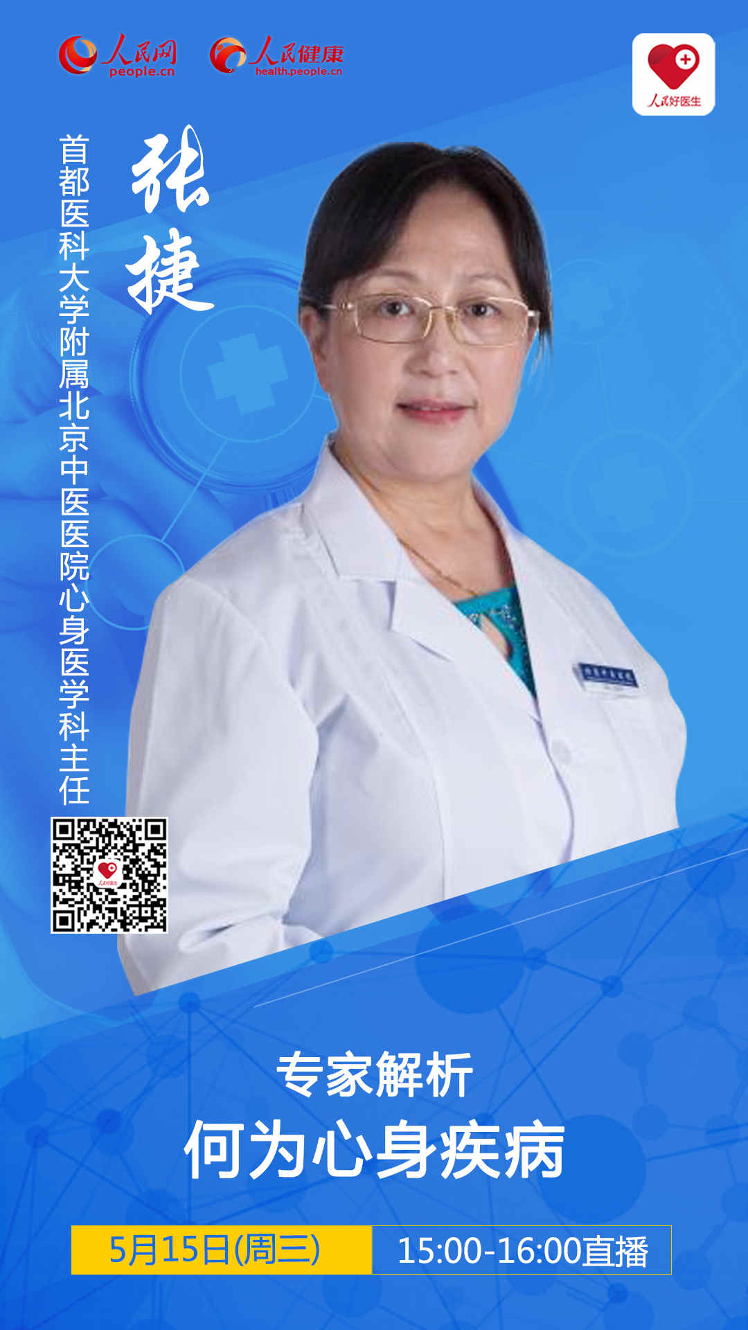 常見的心身疾病有哪些?它是如何發(fā)生發(fā)展的,又該如何治療?2019年5月15日(周三)15:00-16:00,首都醫(yī)科大學(xué)附屬北京中醫(yī)醫(yī)院心身醫(yī)學(xué)科主任張捷將在“人民好醫(yī)生”App進(jìn)行科普直播,并在線解答大家關(guān)于心身疾病的各種困惑,別錯(cuò)過哦!