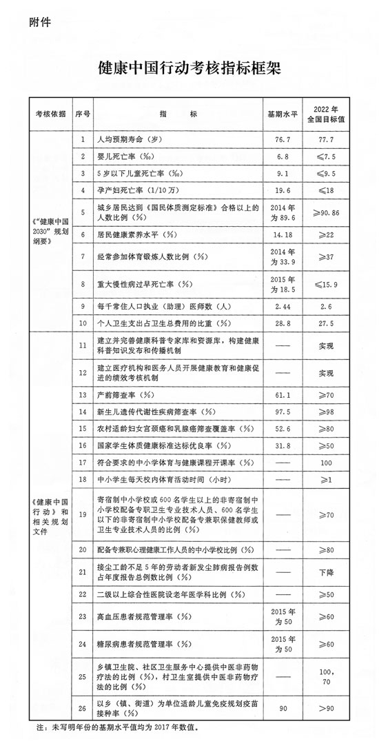 (受權(quán)發(fā)布)國務(wù)院辦公廳關(guān)于印發(fā)健康中國行動組織實(shí)施和考核方案的通知