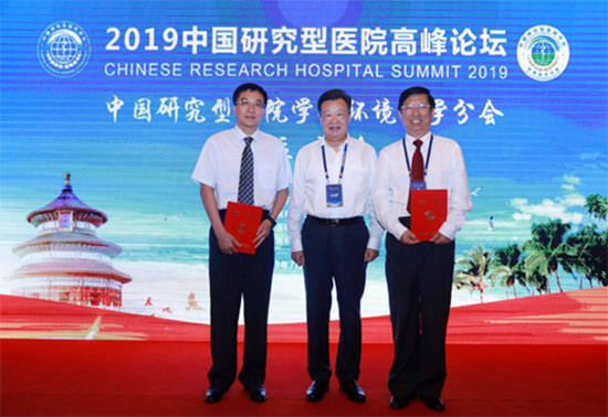 中國研究型醫(yī)院學(xué)會何振喜會長向分會孫兆林會長、朱京海首席研究員頒發(fā)證書