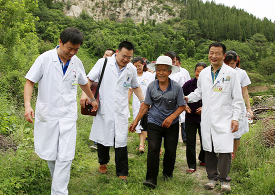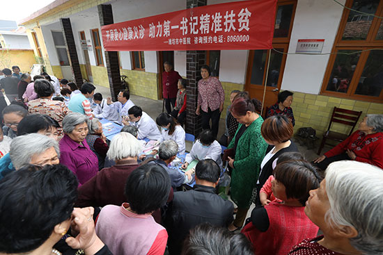 醫(yī)院義診專家隊登上海拔800米的大山頂上,為留守老人義診、查體