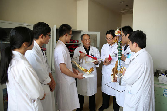 全國名老中醫(yī)藥傳承指導老師王景彥正在傳授中醫(yī)正骨技法