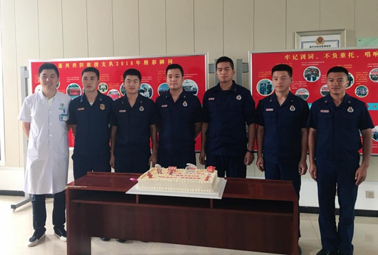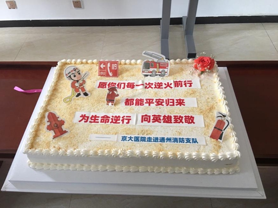 據(jù)了解,京大醫(yī)院的醫(yī)護人員還為消防員們帶去了生日蛋糕,和他們一起提前為祖國母親慶生。