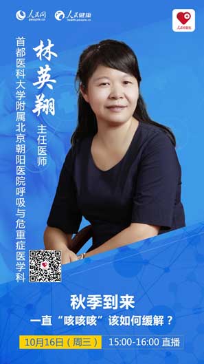2019年10月16日(周三)15:00-16:00,首都醫(yī)科大學附屬北京朝陽醫(yī)院呼吸與危重癥醫(yī)學科主任醫(yī)師林英翔將在“人民好醫(yī)生”App進行科普直播,并在線解答大家關于呼吸系統(tǒng)疾病的各種困惑,別錯過哦!