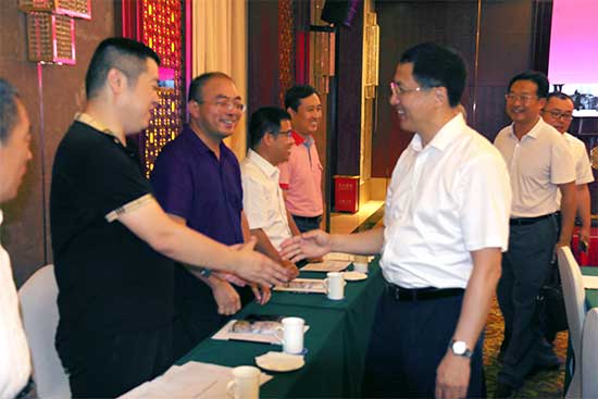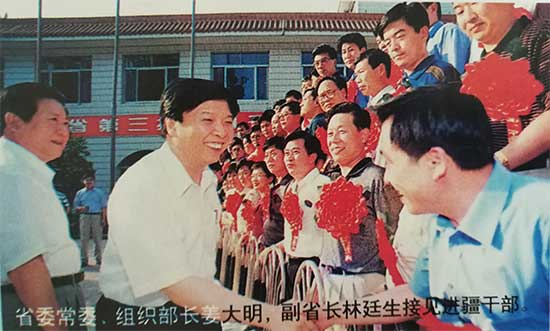 1999年6月,時任山東省省委常委、組織部長姜大明、副省長林廷生接見進疆干部