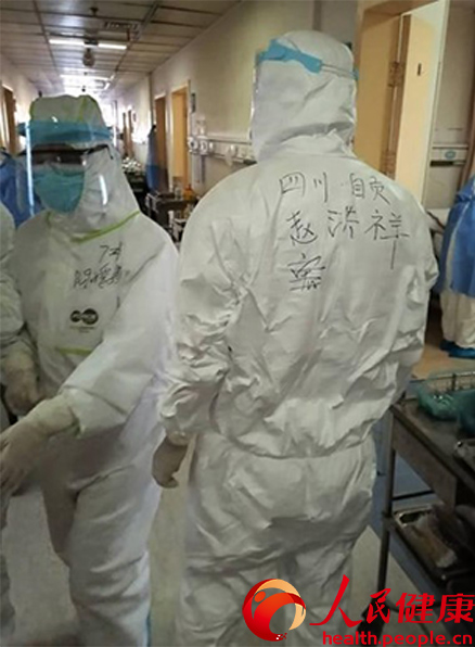 身穿防護(hù)服的趙洪祥。 自貢市第四人民醫(yī)院供圖