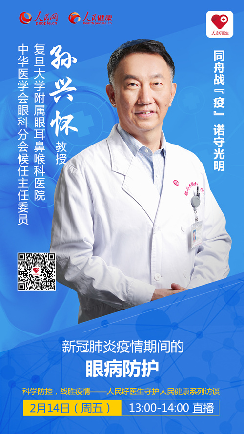 2020年2月14日(周五)13:00-14:00,中華醫(yī)學(xué)會眼科分會候任主任委員、復(fù)旦大學(xué)附屬眼耳鼻喉科醫(yī)院孫興懷教授進(jìn)行科普直播訪談,在線講解眼病防護(hù)知識。