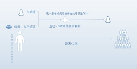 新冠病毒主要傳播途徑是經(jīng)呼吸道飛沫傳播和接觸傳播。飛沫傳播是指吸入患者或病毒攜帶者咳嗽或打噴嚏時(shí)噴出的呼吸道飛沫。而飛沫便是指直徑> 5微米的含水顆粒,咳嗽、打噴嚏、大聲說(shuō)話,均可從口腔或鼻腔噴出飛沫。