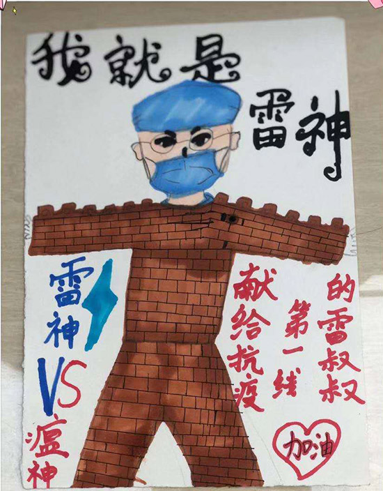 今年“雷神”再次奔赴一線,為了表達(dá)對(duì)他的敬佩和感激,有人專門給他畫了一幅漫畫加油鼓勁,希望“雷神”戰(zhàn)勝“瘟神”。雷懷定說:“收到漫畫我很感動(dòng),我們一定爭(zhēng)取早日打敗“瘟神”。