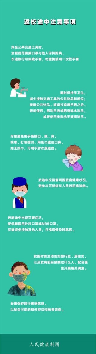 近日,多地明確開學(xué)日期。在即將返校的途中,學(xué)生如何做好自身防護(hù)、開學(xué)期間如何避免交叉感染,這些都是家庭、學(xué)校乃至全社會關(guān)注的重點。下面,健康小編就向大家介紹一下返校途中以及學(xué)生上課后應(yīng)該注意的事項。