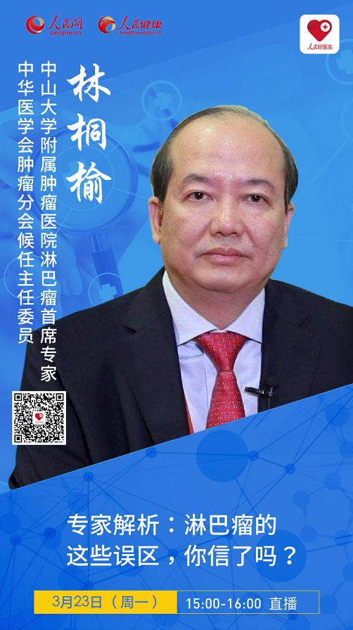 2020年3月23日(周一)15:00-16:00,“人民好醫(yī)生”客戶端邀請(qǐng)到中山大學(xué)附屬腫瘤醫(yī)院淋巴瘤首席專家,中華醫(yī)學(xué)會(huì)腫瘤分會(huì)候任主任委員林桐榆教授,來(lái)與我們共同交流一下淋巴瘤的相關(guān)問題。