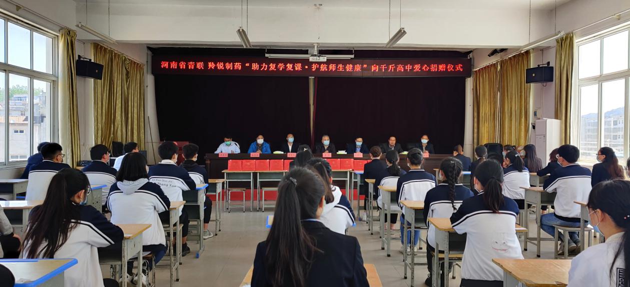 活動(dòng)前一天,4月28日上午,羚銳公司還分別在新縣高中、新縣二高、新縣職業(yè)高中、新縣千斤高中4所高中舉行了四場捐贈(zèng)活動(dòng),新縣縣委常委、縣紀(jì)委書記邵永峰, 新縣人民政府副縣長趙振營,新縣教育局局長李建章等參加了捐贈(zèng)儀式。其他8所學(xué)校防護(hù)物資,將于“五一”節(jié)后陸續(xù)安排送達(dá)。