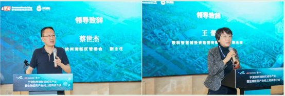 寧波杭州灣新區(qū)管委會副主任蔡世杰、聯(lián)科智慧城投資集團有限公司副總裁王蕾分別致辭
