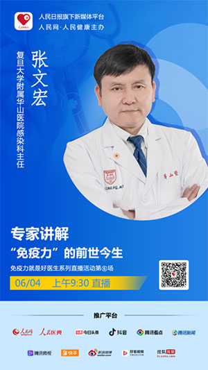 2020年6月4日(周四)上午9:30,人民日?qǐng)?bào)社旗下新媒體“人民好醫(yī)生”客戶端將邀請(qǐng)復(fù)旦大學(xué)附屬華山醫(yī)院感染科主任張文宏教授進(jìn)行視頻訪談,與大家在線分享免疫力的發(fā)展和其重要性。