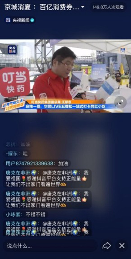 叮當(dāng)快藥副總裁汪獻(xiàn)忠受邀參加央視新聞直播采訪,向央視新聞客戶端、微博、抖音、快手五大平臺(tái)用戶介紹叮當(dāng)快藥發(fā)放健康消費(fèi)券、醫(yī)用口罩1元購(gòu)以及慢病藥直降價(jià)三大惠民措施,累計(jì)超過528萬粉絲在線圍觀、互動(dòng)。