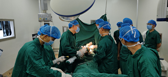 田洪濤副教授正在為患者進(jìn)行人工全髖關(guān)節(jié)置換日間手術(shù) 圖片來源:武漢協(xié)和醫(yī)院