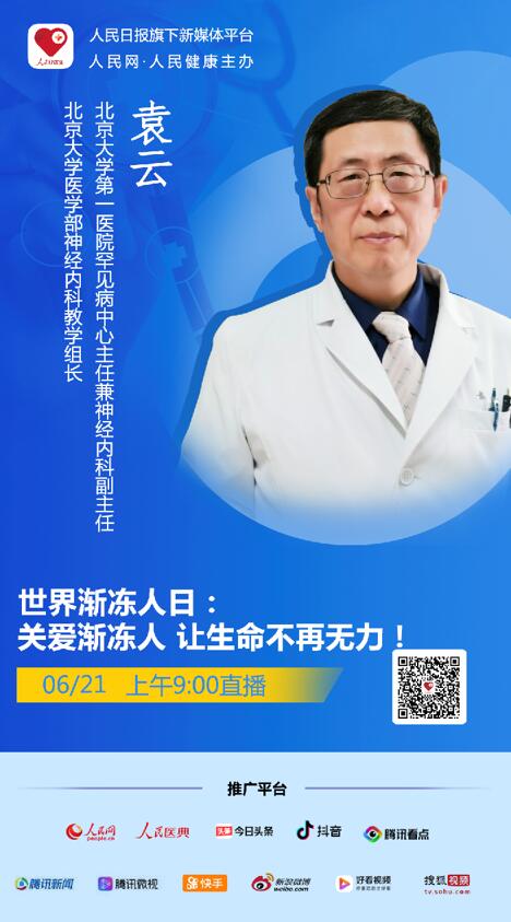 今年6月21日是國(guó)際第20個(gè)“漸凍人日”,但我們對(duì)“漸凍人癥”這種罕見病的了解仍然極為有限。2020年6月21日(周日)9:00-10:00,人民日?qǐng)?bào)社旗下新媒體平臺(tái)“人民好醫(yī)生”客戶端邀請(qǐng)北京大學(xué)第一醫(yī)院罕見病中心主任兼神經(jīng)內(nèi)科副主任,北京大學(xué)醫(yī)學(xué)部神經(jīng)內(nèi)科教學(xué)組長(zhǎng)袁云進(jìn)行視頻直播訪談,讓更多人知道被稱為漸凍人的這一罕見疾病的相關(guān)知識(shí)。