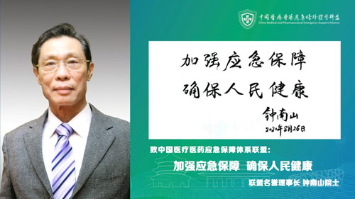 鐘南山院士為聯(lián)盟成立題辭:加強(qiáng)應(yīng)急保障,確保人民健康。