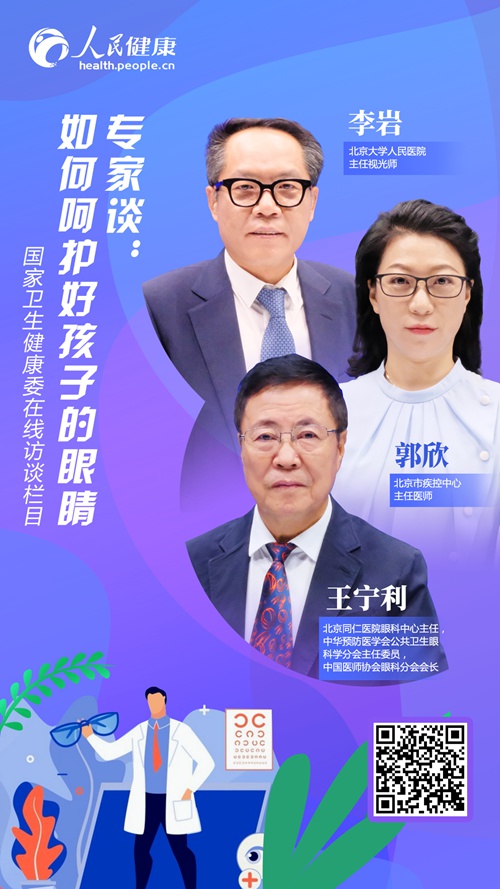 對此,人民網聯合國家衛(wèi)生健康委,邀請北京同仁醫(yī)院眼科中心主任、中華預防醫(yī)學會公共衛(wèi)生眼科學分會主任委員、中國醫(yī)師協會眼科分會會長王寧利,北京市疾控中心主任醫(yī)師郭欣,北京大學人民醫(yī)院主任視光師李巖,為大家普及近視防控的科普知識,指導家庭和兒童青少年做好近視防控。