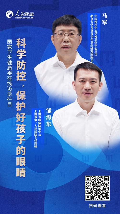 日前,人民網聯合國家衛(wèi)生健康委,邀請中國疾控中心學校衛(wèi)生中心主任、北京大學兒童青少年衛(wèi)生研究所所長馬軍,上海市眼病防治中心、上海市第一人民醫(yī)院主任醫(yī)師鄒海東,對于網友關心的學校關于近視防控采取的具體措施、高度近視的危害等問題進行解答,同時呼吁大家從自身做起,利用學習到的相關科普知識,保護好眼睛。