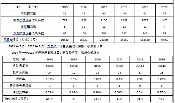據(jù)該醫(yī)院工作人員介紹,該醫(yī)院三級(jí)質(zhì)控體系運(yùn)行5年來,醫(yī)生對質(zhì)量控制的理解、認(rèn)識(shí)、態(tài)度明顯改善,質(zhì)控理念深入人心,同時(shí),質(zhì)控員輪值制使一線骨干醫(yī)生經(jīng)歷了質(zhì)控培訓(xùn)、質(zhì)控檢查、科間學(xué)習(xí)等過程,他們的職業(yè)素質(zhì)得到明顯提升。醫(yī)生的質(zhì)控觀念明顯加強(qiáng)。密集的日、周質(zhì)控,在時(shí)間面上形成廣泛覆蓋,保證了病歷完成時(shí)效性,月質(zhì)控和質(zhì)控員的績效管理,讓臨床醫(yī)生時(shí)刻保持質(zhì)量控制警覺。質(zhì)控理念深入每一名醫(yī)生心中,在質(zhì)控約束下工作成為習(xí)慣。質(zhì)控避免了一些醫(yī)療缺陷的發(fā)生。質(zhì)控前移到環(huán)節(jié)質(zhì)量控制,使缺陷早期被發(fā)現(xiàn)、整改,形成了缺陷導(dǎo)向的醫(yī)療質(zhì)量管理。質(zhì)控工作提升了全體醫(yī)生的綜合職業(yè)素質(zhì)。實(shí)行三級(jí)質(zhì)控以來,已有68名醫(yī)生輪流擔(dān)任質(zhì)控員,占全部一線醫(yī)生34.51%,他們都經(jīng)歷了質(zhì)控培訓(xùn)、質(zhì)控檢查、反饋整改、科間學(xué)習(xí)等過程,職業(yè)素質(zhì)得到明顯提升。質(zhì)控效果體現(xiàn)在醫(yī)療投訴上,醫(yī)療投訴事件逐年減少,有效投訴事件及賠償大幅下降,遠(yuǎn)低于全國平均水平