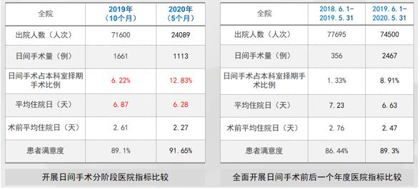 據(jù)該院工人員介紹,2020年新冠疫情期間在3月份復(fù)工復(fù)產(chǎn)重啟之后,行政MDT管理模式為日間手術(shù)運(yùn)營(yíng)的快速恢復(fù)提供了高效有力的保障。6月份日間手術(shù)量達(dá)到488例,日間手術(shù)占擇期手術(shù)比例占17.83%,達(dá)到了該項(xiàng)目開(kāi)展以來(lái)的第二個(gè)小高峰。醫(yī)院平均住院日(6.35天)、術(shù)前平均住院日(2.2天)均呈現(xiàn)持續(xù)下降趨勢(shì)。在PDCA有效管控下,我們比較了開(kāi)展日間手術(shù)前后的年度數(shù)據(jù),以及開(kāi)展日間手術(shù)后2019年10個(gè)月與2020年5個(gè)月分期數(shù)據(jù),各項(xiàng)醫(yī)療業(yè)務(wù)指標(biāo)和服務(wù)指標(biāo)持續(xù)改善。