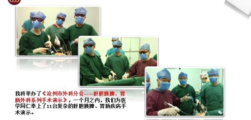 肝膽胰外一科是滄州市重點學科,以肝膽胰外科、微創(chuàng)外科為重點,科室技術(shù)力量雄厚、梯隊建設合理,既有經(jīng)驗豐富的專家,又有學術(shù)活躍的中青年技術(shù)骨干。有多名同志擔任國內(nèi)學術(shù)團體、河北省外科學會、肝膽外科、胰腺外科、內(nèi)鏡與腹腔鏡學組及肝癌委員會常委、委員。