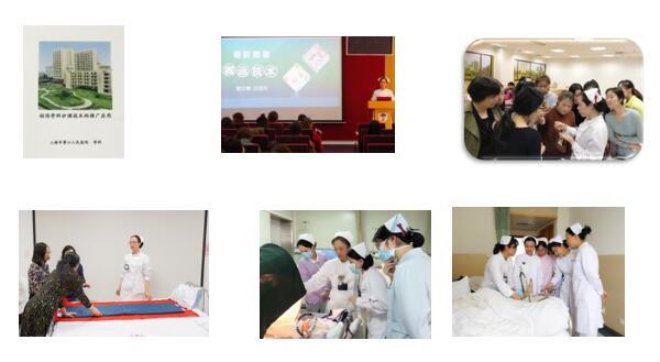 經(jīng)過多年的臨床實踐改進和創(chuàng)新,我院骨科在創(chuàng)傷骨科護理技術(shù)(封閉式骨牽引針孔護理技術(shù)、骨折患者搬運技術(shù)、特殊治療體位護理技術(shù)、肢體血運監(jiān)測技術(shù)等)方面,形成了規(guī)范的操作流程并研發(fā)了專業(yè)護理用具,在臨床應用中取得良好的效果。由于醫(yī)療資源緊張和住院時間短,為保證術(shù)后轉(zhuǎn)診到一、二級醫(yī)院的骨科患者接受與三級醫(yī)院同等水平的骨科護理。本團隊在申康發(fā)展中心的支持下,旨在將創(chuàng)傷骨科護理技術(shù)(四項技術(shù))在上海市八家合作醫(yī)院進行培訓和推廣。