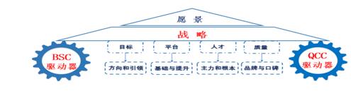 該模式以戰(zhàn)略為驅(qū)動(dòng)源、BSC與QCC為驅(qū)動(dòng)工具,目標(biāo)導(dǎo)向與全員參與為驅(qū)動(dòng)力,構(gòu)成了“卓越績效戰(zhàn)略引領(lǐng),BSC考核驅(qū)動(dòng),QCC組織保障”的管理三角。