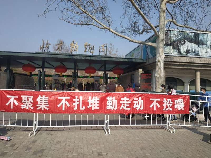 北京動(dòng)物園南門,游客在測溫驗(yàn)碼,確認(rèn)健康綠碼后進(jìn)入園區(qū)。今年2月11日至2月17日,北京動(dòng)物園等市屬10家公園在做好防控措施的前提下向市民免費(fèi)開放,實(shí)行限量、預(yù)約、錯(cuò)峰游園。北京動(dòng)物園提示,入園游覽請(qǐng)文明游園,科學(xué)佩戴口罩,保持安全社交距離,不扎堆、不聚集。進(jìn)入室內(nèi)空間時(shí)以及在室外間距不足1米時(shí)須佩戴口罩。