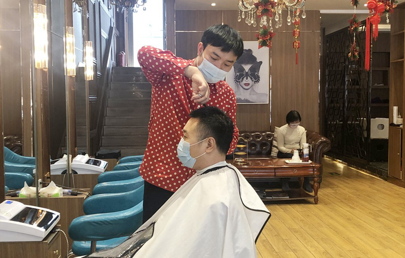 我國目前的新冠肺炎防控成果來之不易,離不開每個(gè)人的辛勤付出。在春節(jié)期間北京市的一家理發(fā)店內(nèi),顧客和發(fā)型師嚴(yán)格遵守防疫要求,在洗頭、剪發(fā)的全過程中,始終佩戴口罩。每位發(fā)型師身前的桌子上,都設(shè)有為剪刀等工具消毒的機(jī)器,做到“每客一換”。顧客的等候區(qū)也刻意留出單獨(dú)區(qū)域,與他人之間保持有效的安全距離。