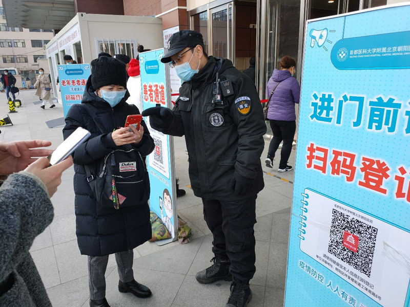春節(jié)期間,北京朝陽醫(yī)院就診患者依然很多!拔也粫(huì)用智能手機(jī),怎么進(jìn)醫(yī)院?”一名60歲左右的患者因不會(huì)使用健康碼而著急不已!鞍⒁,別急,您可以從小程序里面找到健康碼,也可以從旁邊的‘老年通道’進(jìn)入醫(yī)院!痹诎脖H藛T的引導(dǎo)下,患者順利經(jīng)過體溫檢測等程序進(jìn)入醫(yī)院。