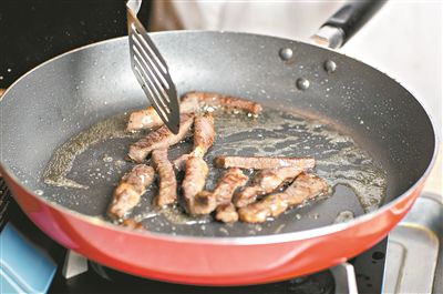 4.另起油鑊,牛肉單獨煎(圖③);