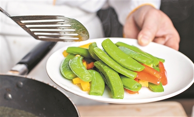 3.蜜豆加彩椒拖水(圖②);