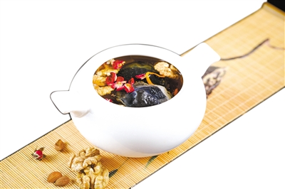 人參若與三七花調(diào)配,可作茶飲。三七花有安神助眠效果,自帶參味,與人參特別般配。朱雪敏說,白色的人參還可以調(diào)和脾胃。若是覺得燥熱,可以用人參須來泡茶,消解煩躁。針對熬夜、氣虛、氣血不足,再加上茯苓,大約每樣3克即可。